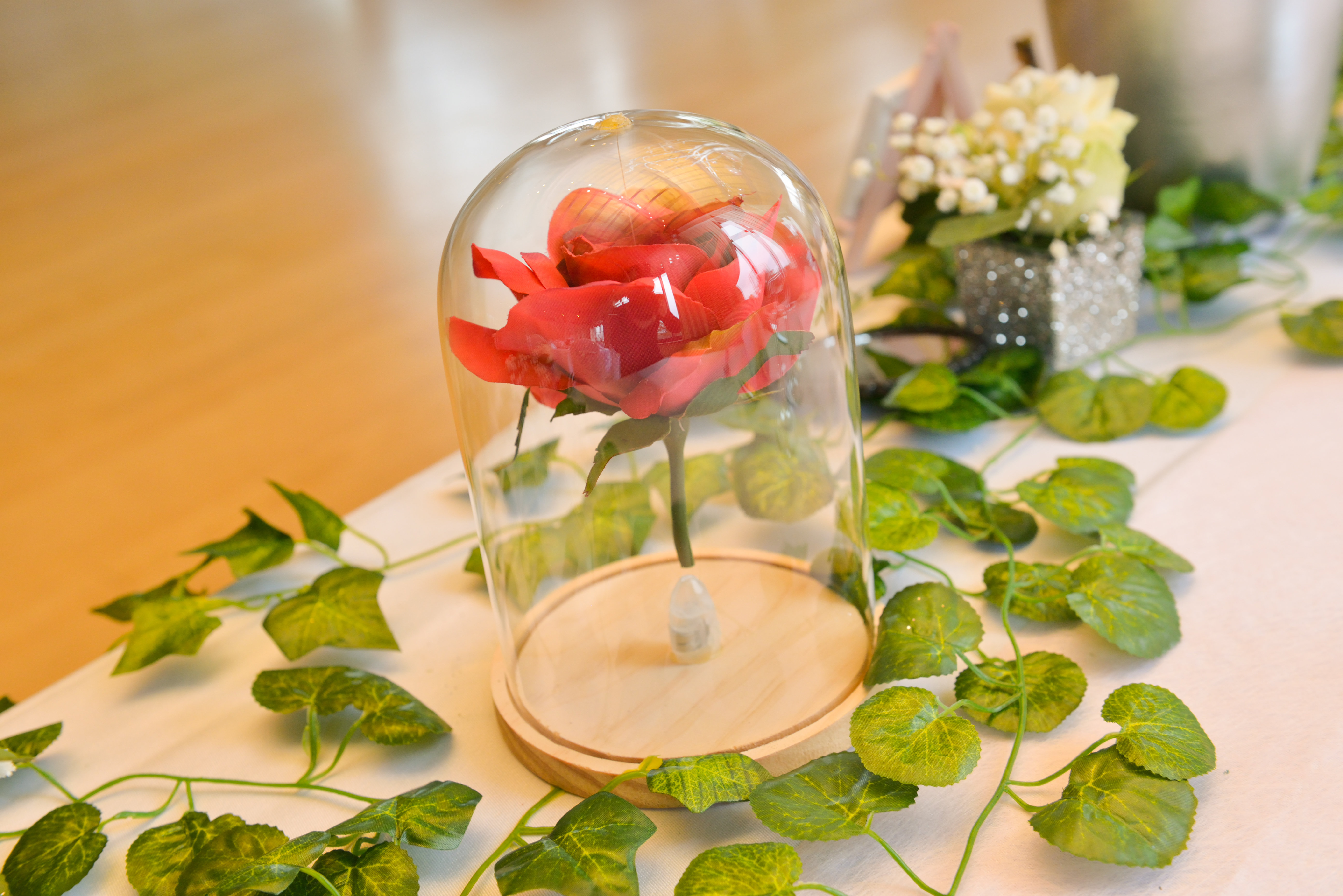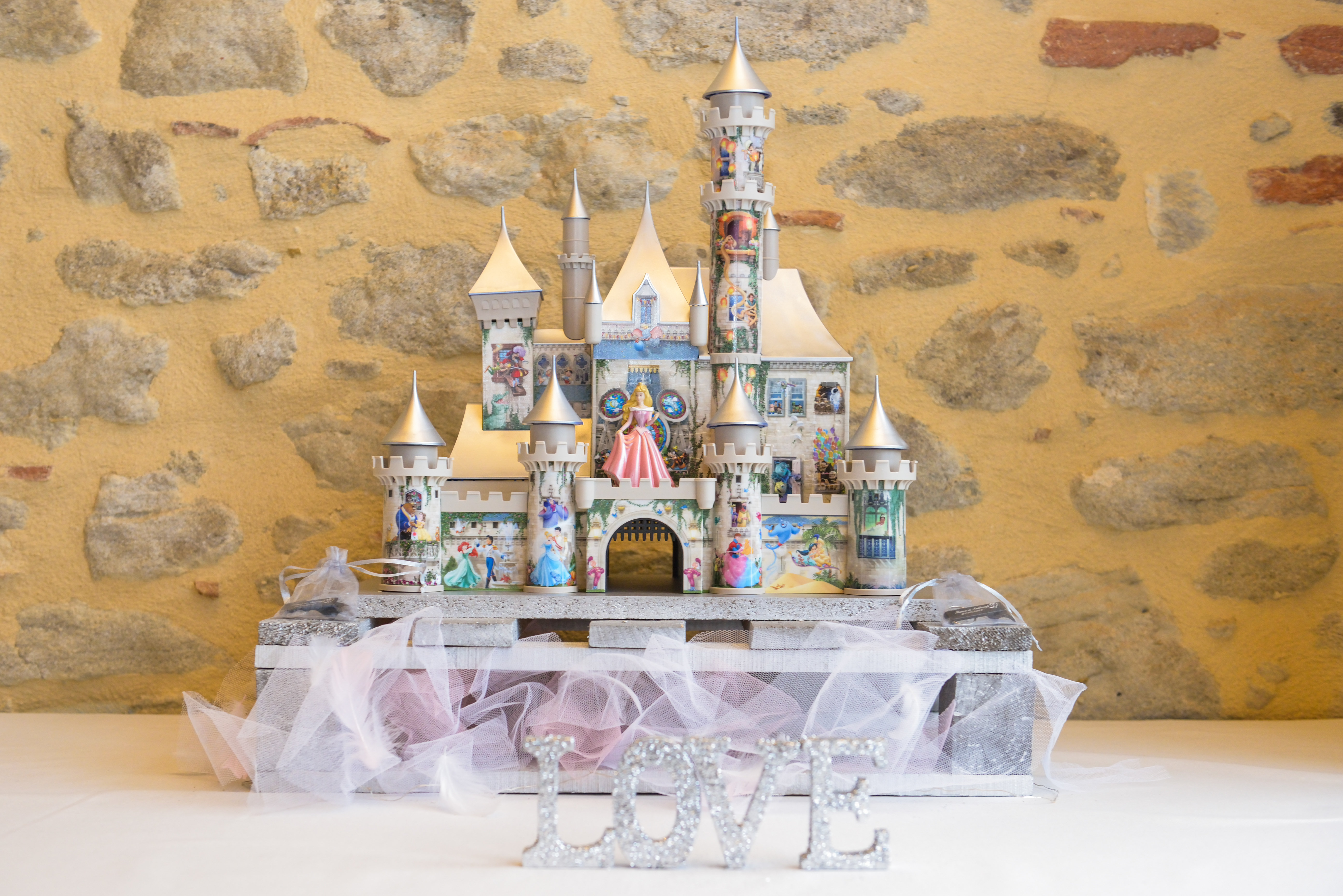 Au domaine de Koukano, situé entre Toulouse et Castres, nous avons eu le plaisir de décorer un mariage sur le thème Disney, avec une palette de couleurs rose et argenté. Chaque table représentait un dessin animé en particulier, avec un décor qui lui ressemblait. La table des mariés représentait l’univers de la Belle et la Bête, ornée de roses et de miroirs, créant ainsi une ambiance enchantée pour les mariés et leurs invités.